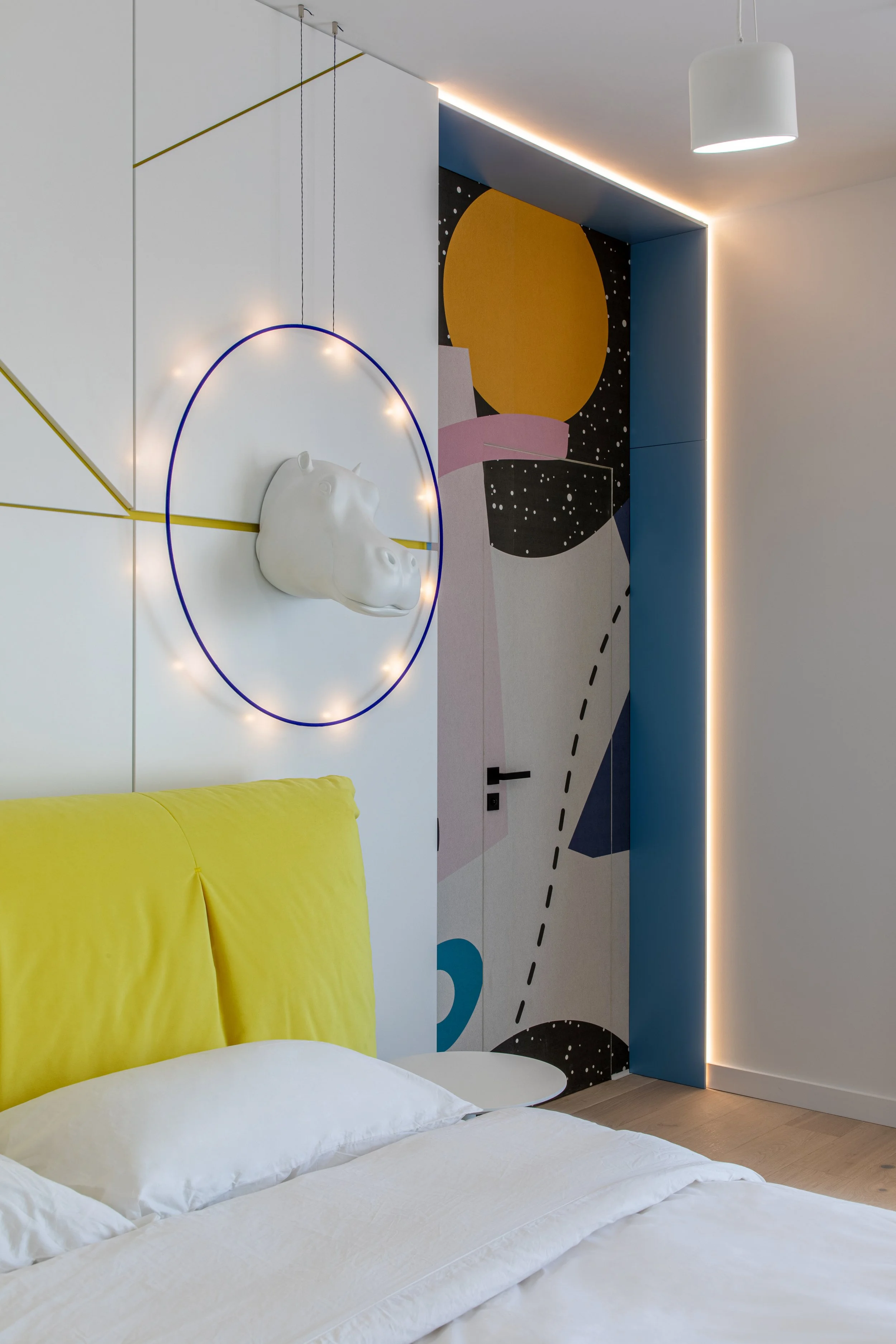 Am încercat să facem această amenajare cât mai plină și variată astfel încât să devină perfectă pentru beneficiari. Dormitorul copilului te invită să descoperi cele mai speciale locuri pentru a te simți confortabil și pentru a redescoperii copilul din tine. În același stil, am amenajat și camera de joacă, astfel încât să descopere și exploreze un tărâm nelimitat de culoare .